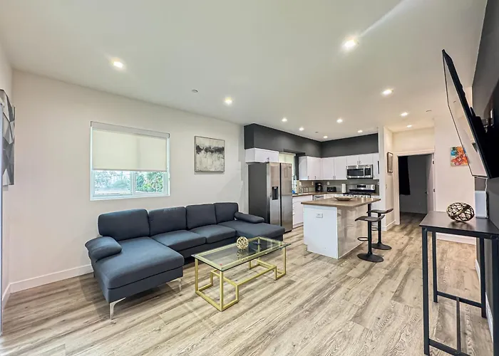 A fully furnished kitchen, as well as coffee and tea making facilities are featured in the villa. The kitchen also offers a refrigerator, an oven, and kitchenware. Guests have access to restaurant Hilltop Coffee + Kitchen, situated at a distance of 200 metres from the accommodation. Well-connected to many sights, the property is within easy walking distance of Slauson & Buckler bus station.